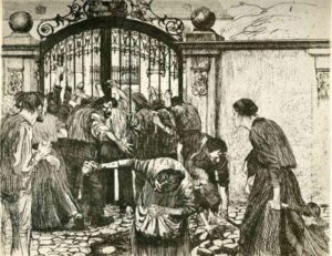ক্যেথের নিজেরই বয়ান, “বহুকাল ধরে আমার যাবতীয় প্রধান কাজের বিষয়বস্তু কেন শুধু শ্রমিকদের জগৎ থেকে আরোহিত হত, তার কারণ খুঁজে পাওয়া যাবে শ্রমিক–অধ্যুষিত আমাদের এই ব্যস্ত, ব্যবসা–প্রধান শহরের সরু সরু গলি–রাস্তায় আমি যে দীর্ঘ সময় পায়ে হেঁটে ঘুরে বেড়াতাম, তার মধ্যে। সেই সময় থেকেই প্রধানত শ্রমিকদের জীবন থেকে উপাদান বেছে নিতে শুরু করি। এর আসল কারণ, সেই পরিমণ্ডলের সবকিছুই আমার কাছে খুব সহজ ও অকৃত্রিম সুন্দর বলে মনে হত। সুন্দর মানে আমার কাছে কোনিগসবের্গের কেউ যখন ভারী মাল বইছে… শ্রমজীবীর প্রাণবন্ত শরীরগতির চেয়ে সুন্দর আর কী হতে পারে? মধ্যবিত্তরা আমাকে আদৌ আকর্ষণ করে না। তাদের পুরো জীবনটাই মনে হয় পুথিসর্বস্ব, অন্যদিকে প্রোলেতারিয়েত জীবনে আছে বিশাল শক্তিস্রোত।”